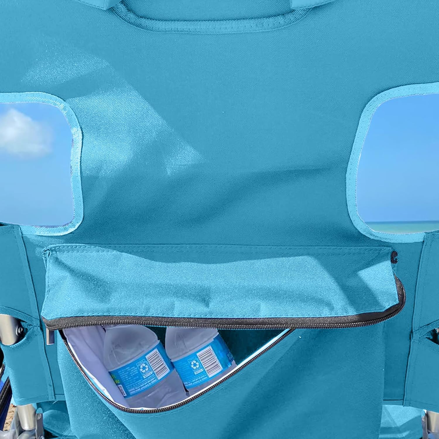 Bolsillo lateral con cremallera y portavasos